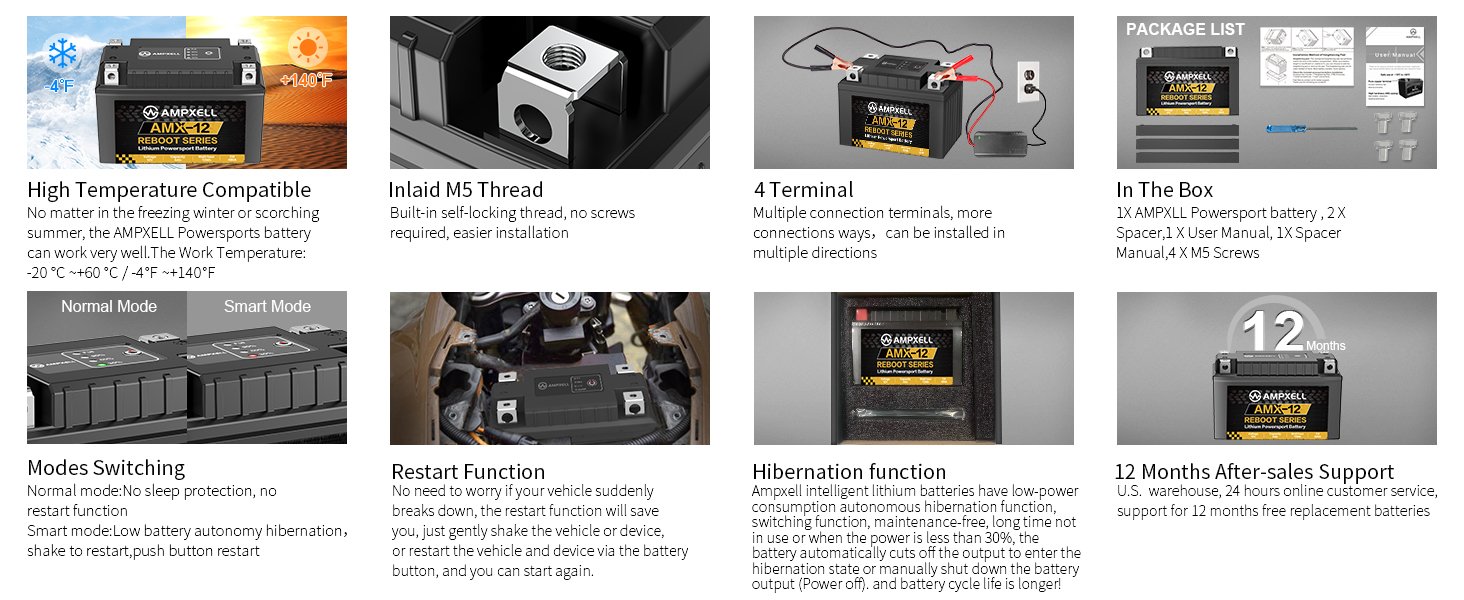 Yes! Our LiFePO4 batteries perform reliably in temperatures as low as -4°F (-20°C), making them ideal for winter use. Unlike lead-acid batteries that lose significant cranking power in cold conditions, our batteries maintain consistent voltage output even in freezing temperatures. This makes them particularly well-suited for seasonal vehicles like snowmobiles, motorcycles, and ATVs that may be stored in cold environments.